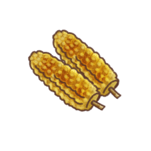 ジューッと焼き上がった2本のとうもろこしが並んだ、リアルでおいしそうな手描き風イラスト。