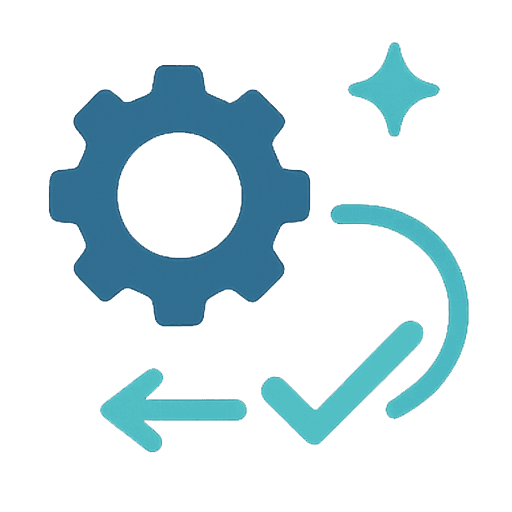 歯車・チェック・矢印で「自動化」や「効率化」をシンプルに表現した、ビジネス向けアイコン素材です⚙️🔁