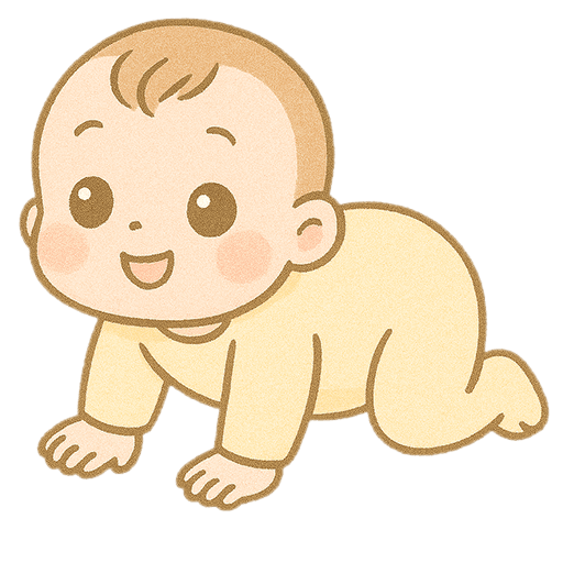 にっこり笑顔でハイハイする赤ちゃんを描いた、やさしい手描き風のイラスト素材です👶