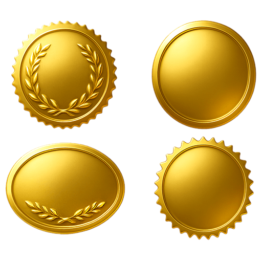 高級感のある金色が特徴的な、4パターンのメダル風シール素材です。