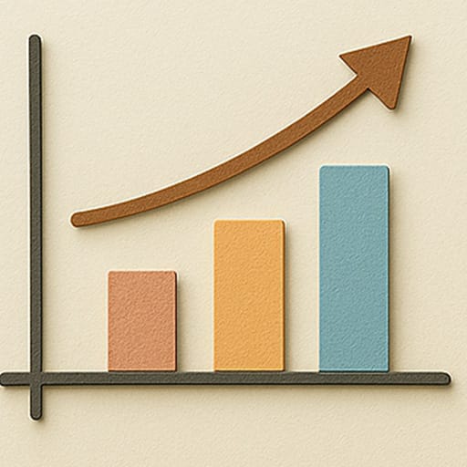やわらかい色合いとクラフト感のあるデザインが印象的な、棒グラフ+矢印のイラスト素材です。