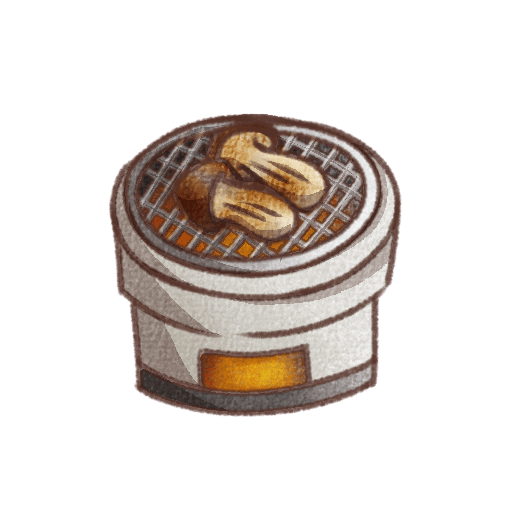 秋の味覚・松茸を七輪でじっくり焼く、ほっこり手描き風のイラスト素材です🍂🍄