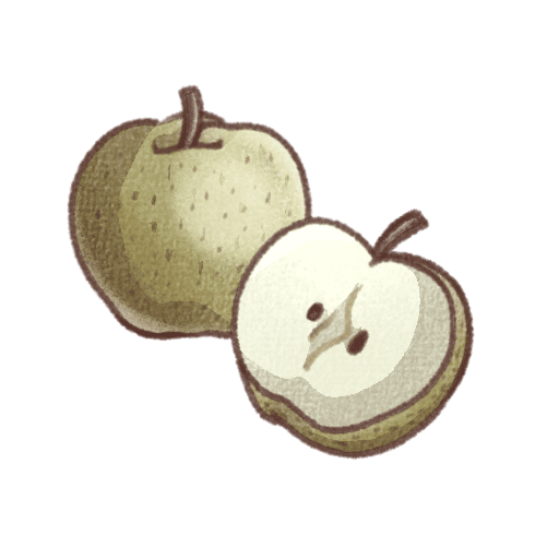 グリーンがかったリアルすぎない手描き風のナシを、シンプルでナチュラルに表現しました。