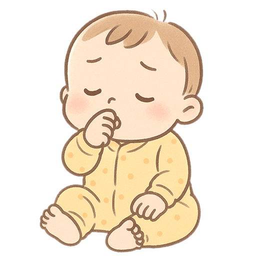眠たげな赤ちゃんのイラストは、育児・子育て・家族に関するデザインに最適。