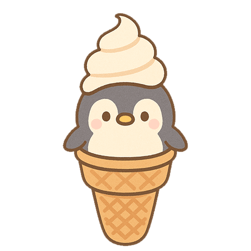 ソフトクリームとペンギンの組み合わせが新鮮でユニークな本素材は、「かわいい 食べ物 イラスト」を探している方にぴったり。