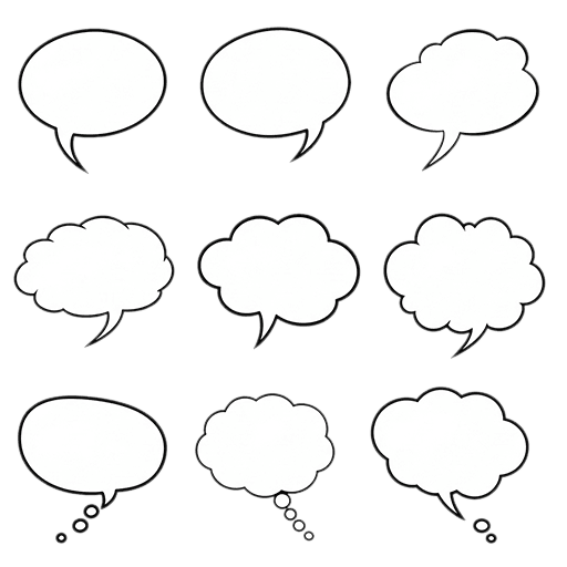 この素材は、さまざまな表現に使いやすい9種類の吹き出しと、思考バブルのイラストをセットにした線画素材です。