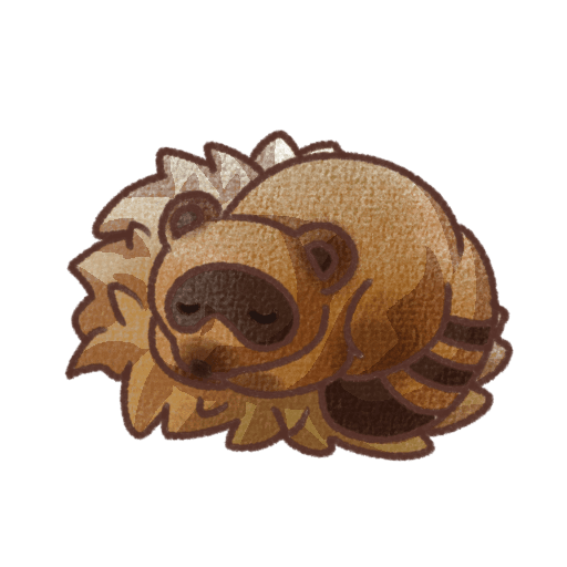 ふかふかの落ち葉の中で、すやすや眠るたぬきのイラスト素材です。